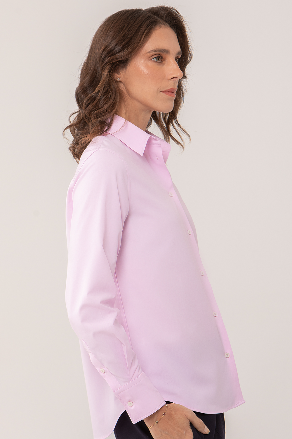 Une chemise rose lumineuse, idéale pour un style chic et polyvalent. Son tissu respirant et sa coupe près du corps offrent un équilibre entre confort, féminité et modernité.