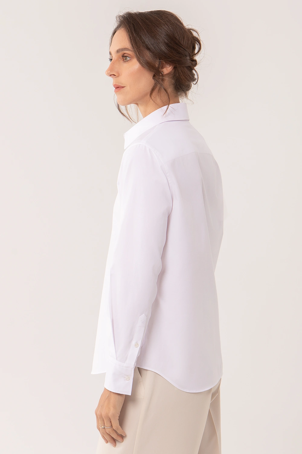 Une chemise blanche pensée pour les femmes actives qui veulent rester élégantes sans effort. Sa popeline légère et sa coupe semi-ajustée créent une silhouette nette, facile à porter du bureau au week-end.